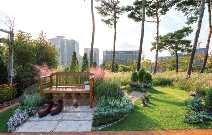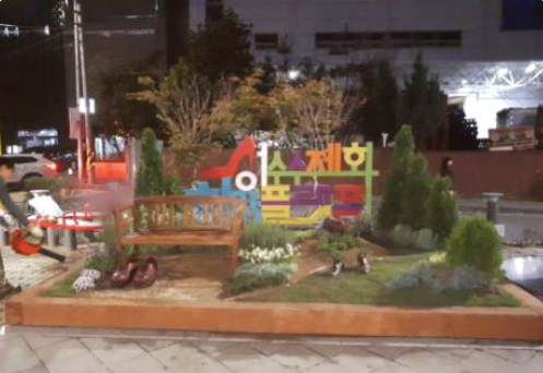 - 성수 수제화거리에서 착안하여 발바닥 모양 정원