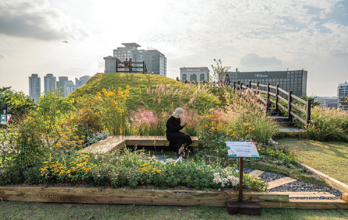 서울의 핫플레이스로 시민의 사랑을 받고 있는 마포구 경의선 숲길과 책거리 일대에서 모티브를 가져온 폐철길 컨셉의 정원으로, 시민들이 교류하고 문화를 공유할 수 있는 공간을 구성한 작품입니다.